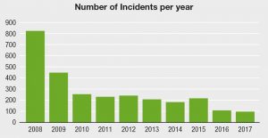 • Since 2008, vehicle incidents have been reduced by nearly 87%.
